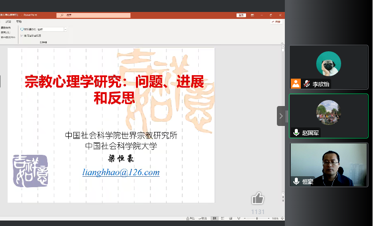 2022年11月13日,应新利体育邀请,中国社会科学院梁恒豪副研究员通过线上形式为我院师生作题为《宗教心理学研究:问题、进展和反思》的学术报告。本次报告由新利体育赵国军副教授主持,200余名师生参加了本次报告。