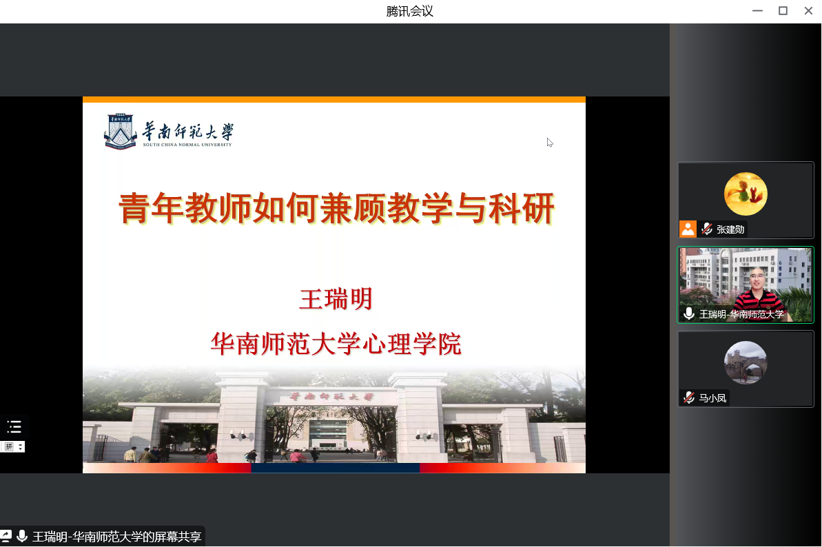 2022年11月16日,应新利体育邀请,华南师范大学新利体育王瑞明教授通过线上形式为我院师生作题为《青年教师如何兼顾教学与科研》的学术报告。本次报告由新利体育马小凤教授主持,100余名师生参加了本次报告。