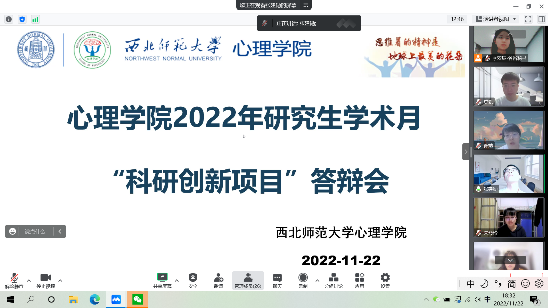 为营造研究生学术交流氛围,进一步激励研究生产出高水平的创新科研成果。2022年11月22日,新利体育在线上举行研究生学术月系列活动之“科研立项”申报答辩活动,54名博士及硕士研究生参加项目申报,新利体育童丹丹博士、曹华博士、张继元博士、张祥字博士、张建勋博士、尹玉龙博士、付军军博士、张炀博士、谢佩博士及100余名研究生参与活动。