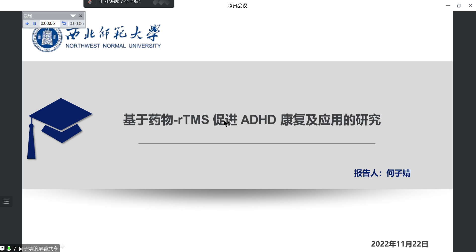 汇报同学分别从申报项目的研究意义和价值、研究现状、问题提出、研究内容、思路方法等方面逐一进行了汇报。本次汇报项目的选题涉及抑制控制、海洛因成瘾、社会排斥、刻板印象、阅读、情绪及心理健康等领域,研究对象覆盖幼儿、中小学生、成人及阿尔兹海默、自闭症等特殊群体,研究方法包括问卷调查、行为实验、脑电实验、经颅磁刺激实验、功能磁共振实验等。参与交流的老师们有针对性的对项目的课题名称,研究设计,研究框架以及逻辑的连贯性、项目结构的完整性及申请书撰写的规范性等问题进行了细致分析,并提出了建议性意见。