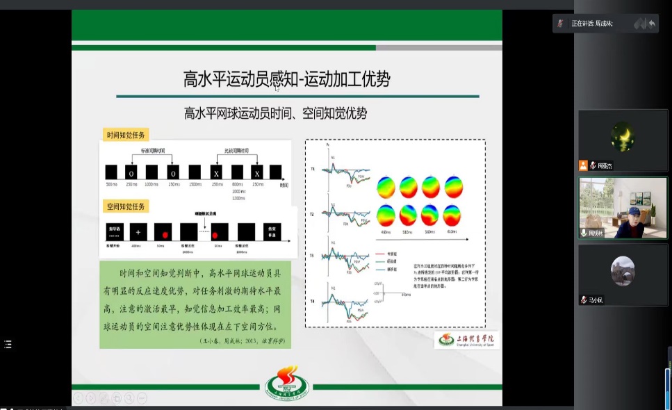 周成林教授首先给我们简单介绍了上海体育学院的总体概况,以及学校心理学科的发展状况。然后周成林教授从高水平运动员的技能表现特征、认知加工优势和感知-运动加工优势这几个方面讲解了高水平运动员的大脑神经加工特征。其次周成林教授通过案例介绍了有氧运动在促进戒毒康复中发挥的重要作用及其认知神经活动特点。最后周成林教授列举了一些实证研究来佐证体育运动能够促进青少年儿童的学习。