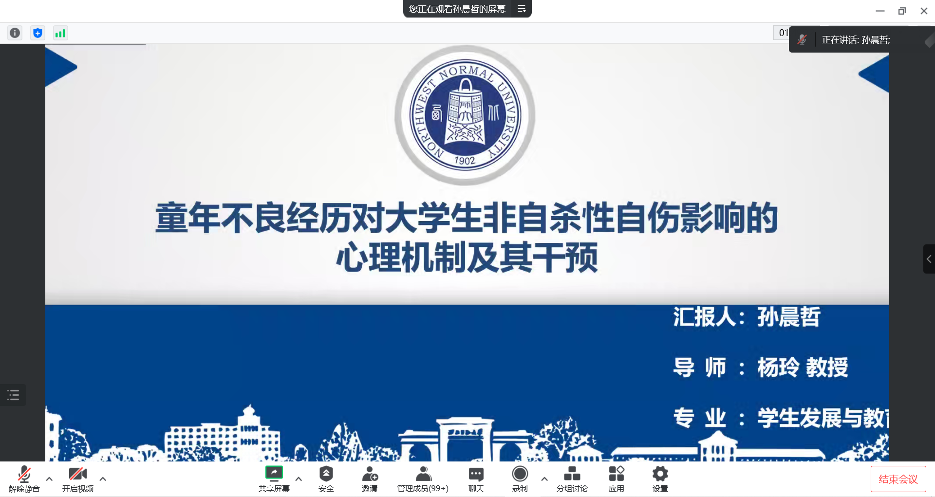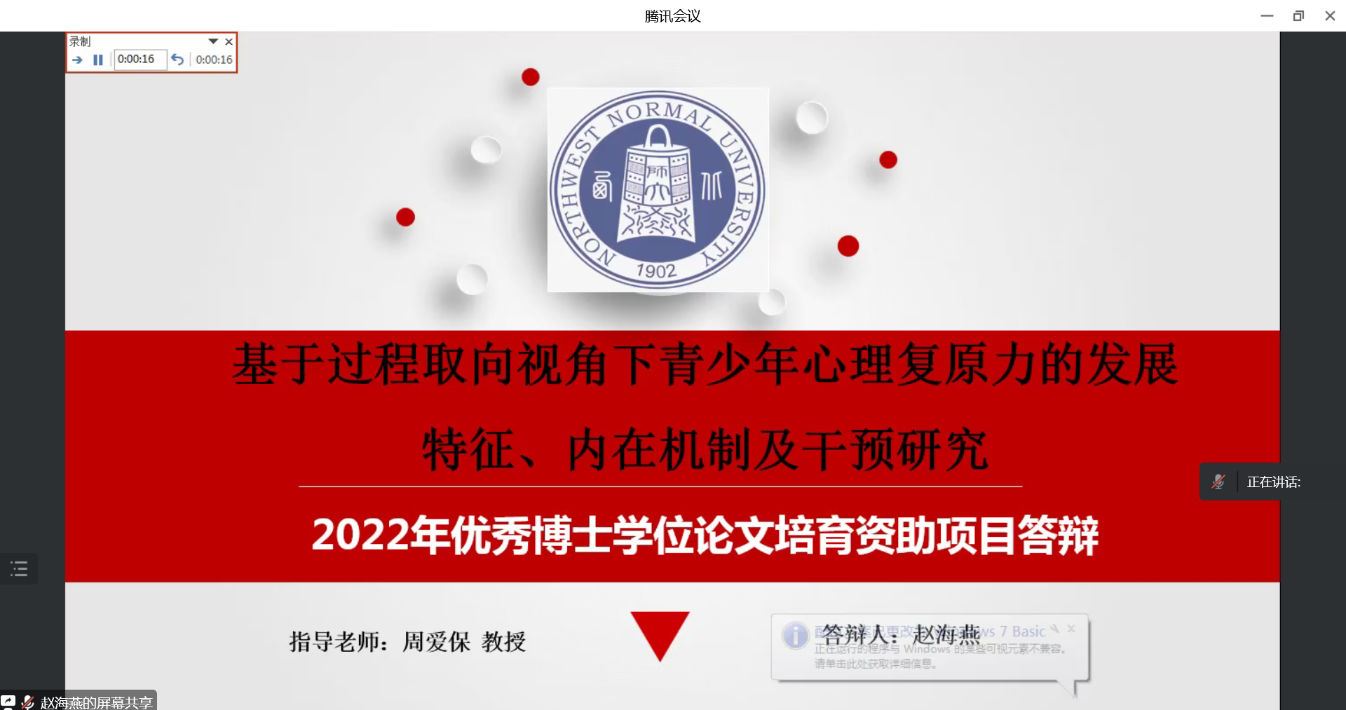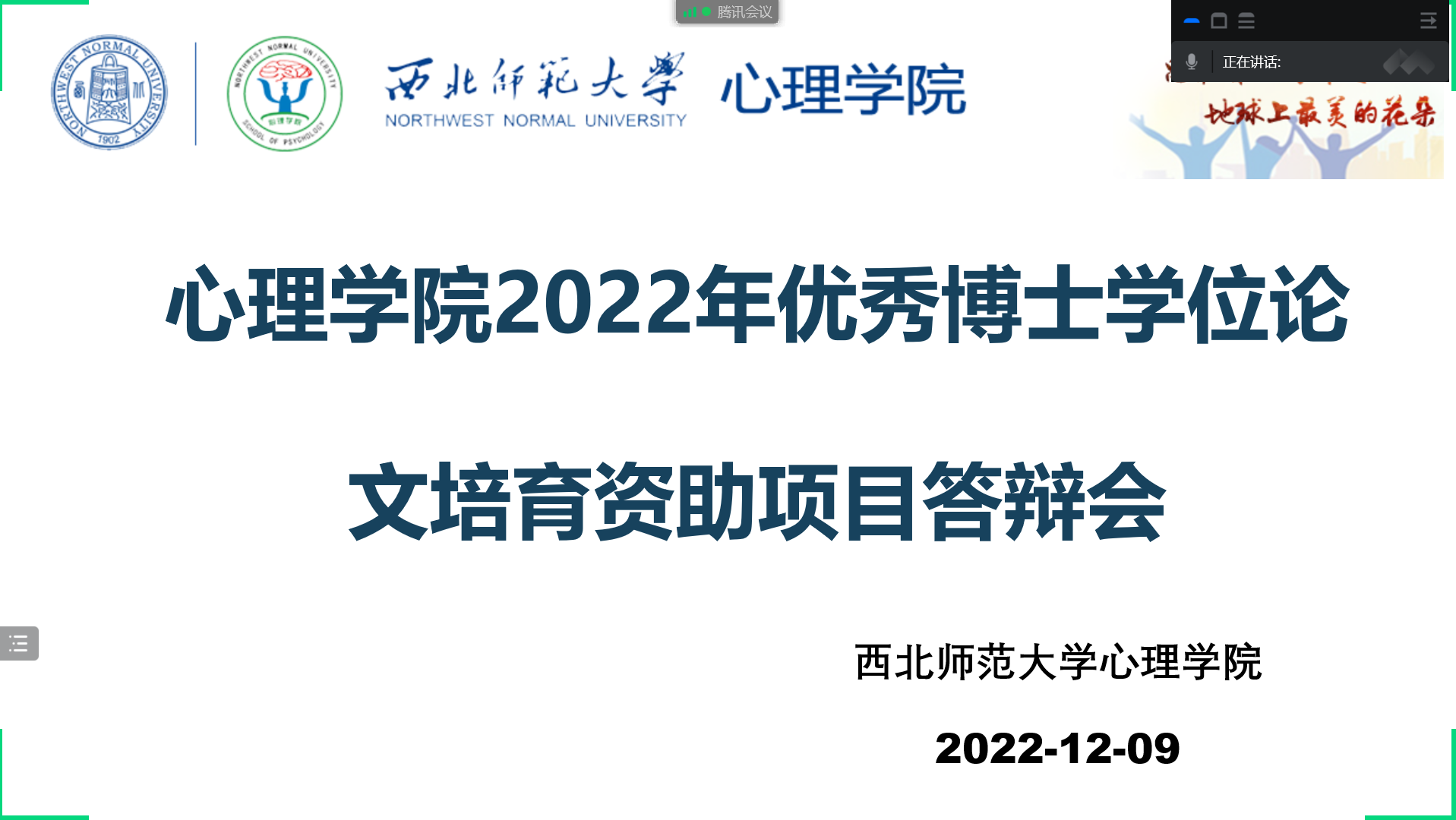 为鼓励博士研究生潜心开展高水平创新性研究,全面提高博士学位论文质量。根据《西北师范大学研究生创新能力提升计划》(西师发〔2019〕39号),新利体育于2022年12月9日下午线上开展2022年优秀博士学位论文培育资助项目工作答辩活动。10名博士研究生参加项目申报,新利体育周爱保教授、杨玲教授、康廷虎教授、杨晓莉教授、马小凤教授、童丹丹副教授及100余名研究生参与活动。