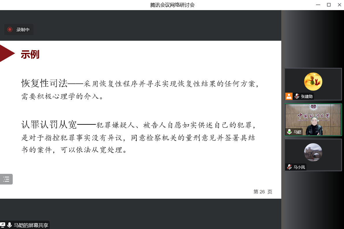 2022年12月15日,应新利体育邀请,中国政法大学马皑教授通过线上形式为我院师生作题为《心理学在司法中的应用》的学术报告。本次报告由新利体育马小凤教授主持,160余名师生参加了本次报告。