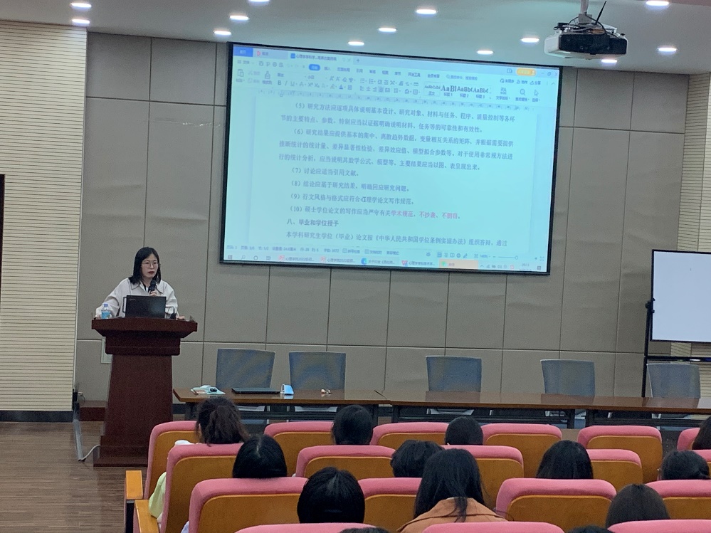 为了便于学生们更好的了解研究生阶段学习的任务和要求,做好学习规划,尽快投入到学习研究中的状态。童丹丹老师以及李世峰老师分别对学术性硕士以及专业型硕士的课程、论文、专业实践(实习)和申请学位要求等方面详细介绍了研究生培养的模式和方案,并对研究生日常管理的相关制度对广大新生作了专题解读。