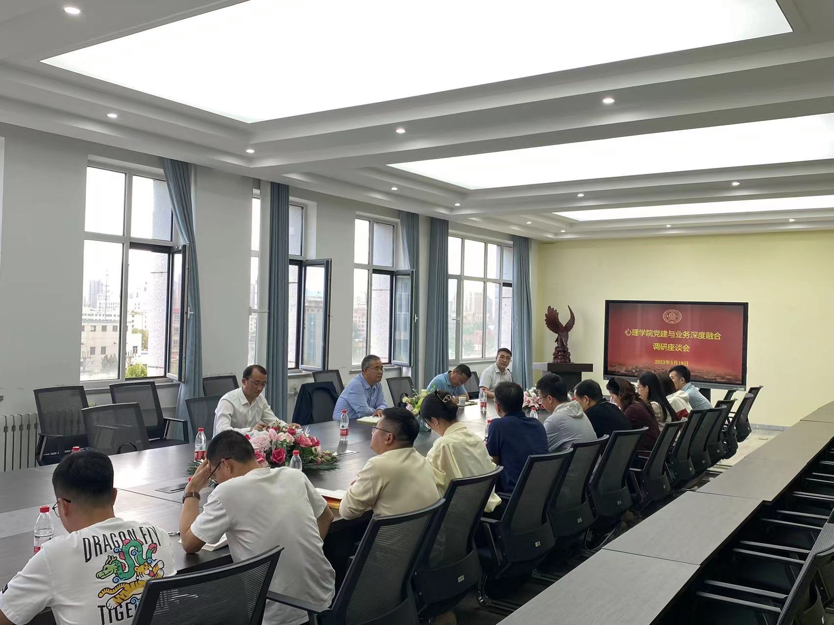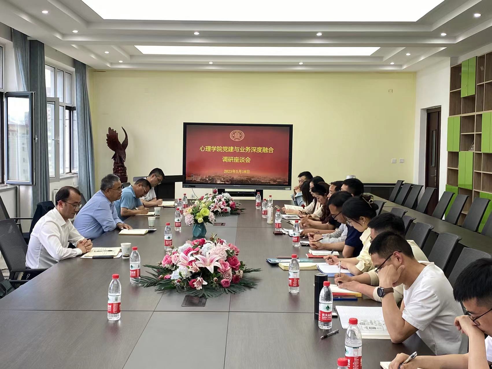 为深入学习贯彻习近平新时代中国特色社会主义思想,全面落实学校党委工作部署,推进学院党建和业务深度融合,2023年5月18日下午,新利体育召开党建和业务深度融合座谈会,校党委副书记刘玉泉来到新利体育调研指导党建和业务深度融合工作,并召开调研座谈会。学校党委组织部相关负责人、新利体育领导班子成员、党委委员、党支部书记、系所中心主任、党员代表参加座谈会,座谈会由学院党委书记王仁主持。