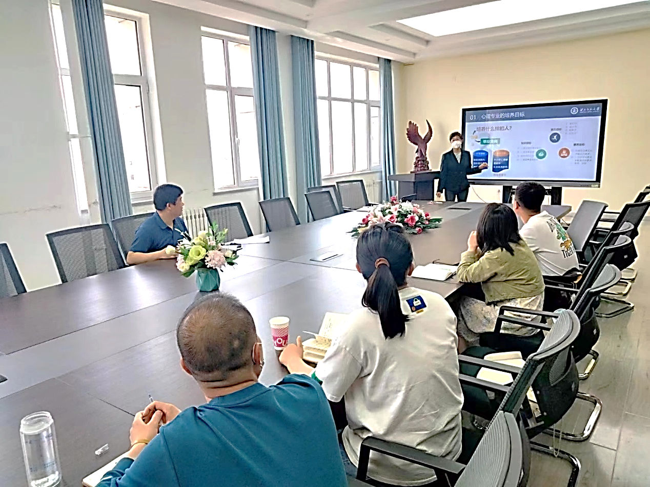 学院根据《西北师范大学关于修订2023 版本科人才培养方案的指导意见》的工作安排和要求,积极推进心理学专业本科人才培养方案修订工作。在前期教学调研和学院教学工作会议的基础上,5月22日,心理系在知行校区弘文楼401会议室,组织教师研讨心理学专业2023版本科生人才培养方案,并组织学习了普通高等本科教育教学审核评估指标体系。心理系主任任德云,学院教师胡赛赛、刘晓婷、屈婧和康铁君等参加了此次会议,会议由康廷虎副院长主持。