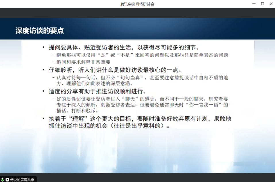 在本次讲座中,傅教授首先讲述了质性研究的理论立场。傅教授介绍了当下心理学知识的接口悖论、科学心理学的“祛魅”和“返魅”、科学心理学视角的局限性等问题。然后,傅教授以脱贫内生动力研究为例向大家介绍了质性研究的操作方法。最后,傅教授讲述了质性研究的时代使命。傅教授的讲座内容丰富、思想深刻,极大地增加了同学们对于心理学质性研究方法的理解。