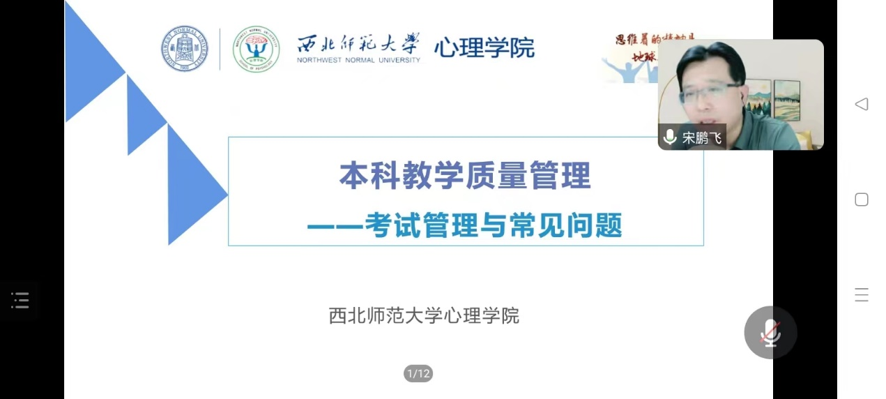 在活动中,教学质量监控处宋鹏飞处长结合专业认证、本科教育教学审核评估等工作,要求学院重视考试管理,重视本科教学,并通过加强本科教学管理,规范考评制度。此外,他还强调教学质量监控处将为教师成长与发展搭建平台,做好服务工作。学校督导马正学教授结合试卷展评督导工作、青年教师听评课工作,分析了考试管理过程中命题质量提升、考试规范管理,以及青年教师教学能力提升等方面的策略和方法,并介绍了基础教育领域对心理学专业人才的需求等。