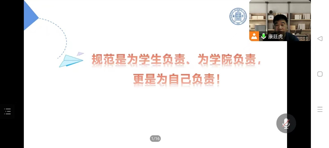 新利体育康廷虎副院长结合本科教育教学审核评估中有关考试管理的要求,以“本科教学质量管理——考试管理与常见问题”为题,分析了考试管理中所涉及的人、事、物,以及命题、试卷交接、监考、试卷评阅、考试相关材料整理与归档等过程中的基本要求,介绍了考试管理的流程规范、注意事项,以及常见的问题,并针对性地提出了解决相关问题的建议和途径。