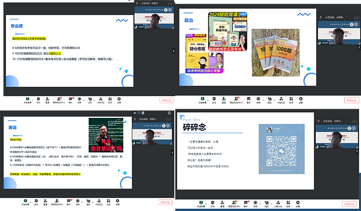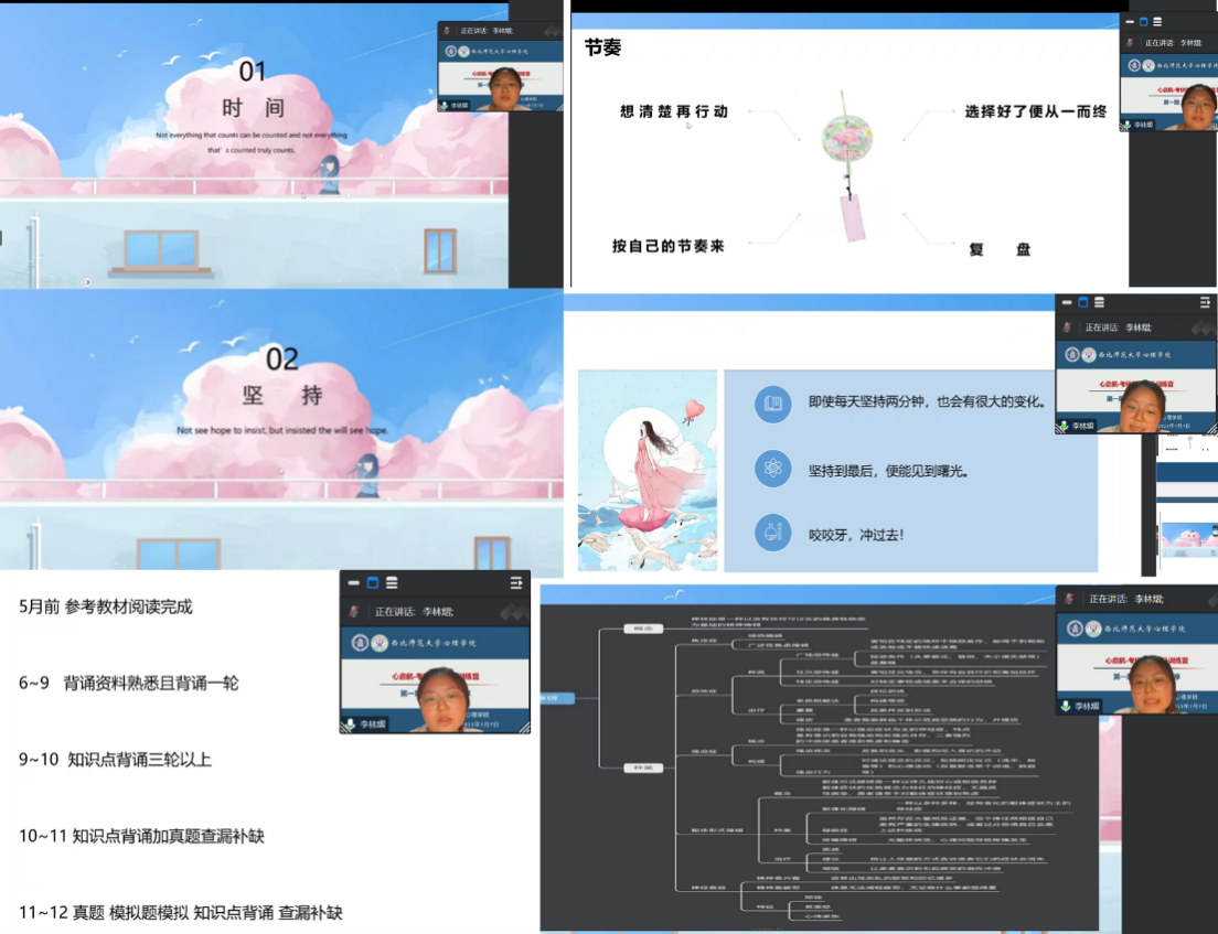 最后分享的是2022级应用心理硕士李林熠同学,李林熠同学特别强调了要按照自己的复习节奏,复习的心态,把握好时间,有效复习。同时,还需要同学们相互鼓励、相互陪伴、相互监督,共同进步。