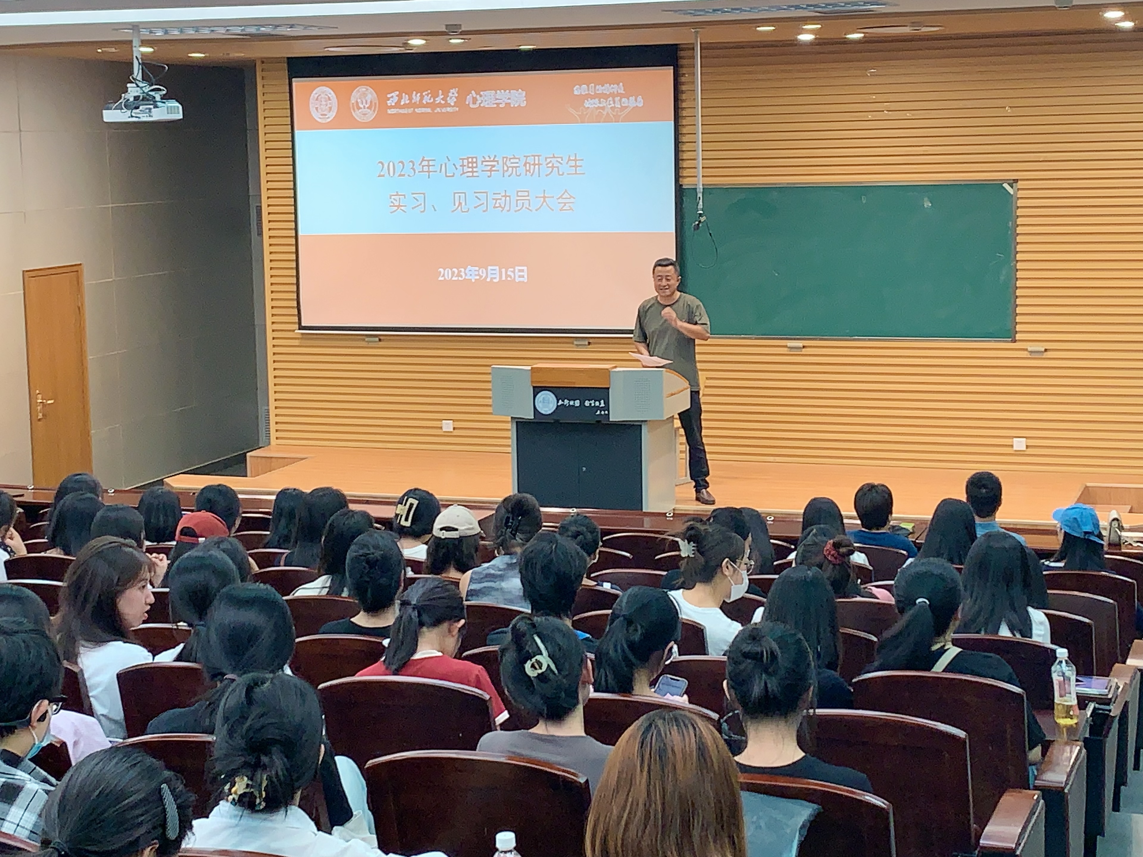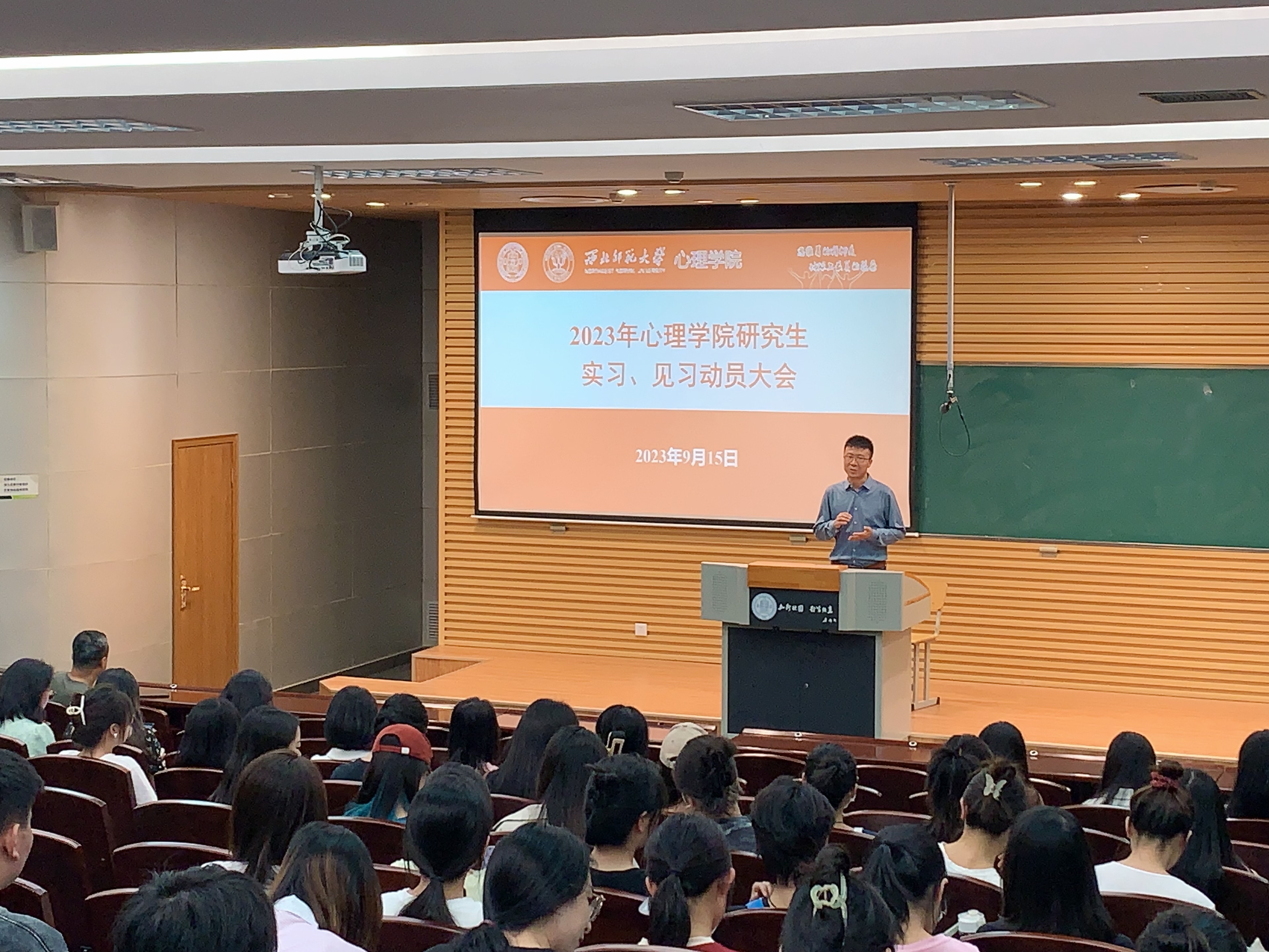 为了提高专业学位研究生的培养质量,引导学生做好见习、实习前的各项准备,推进专业硕士研究生实践工作的开展。我院于2023年9月15日在新校区综合教学楼第二报告厅开展了“2023年硕士研究生实习、见习动员大会”。新利体育副院长丁小斌教授、李世峰副教授、姜艳斐副教授、研究生秘书张娟娟老师以及2021级和2022级心理健康教育和应用心理专业全体硕士研究生出席和参加了本次动员会。