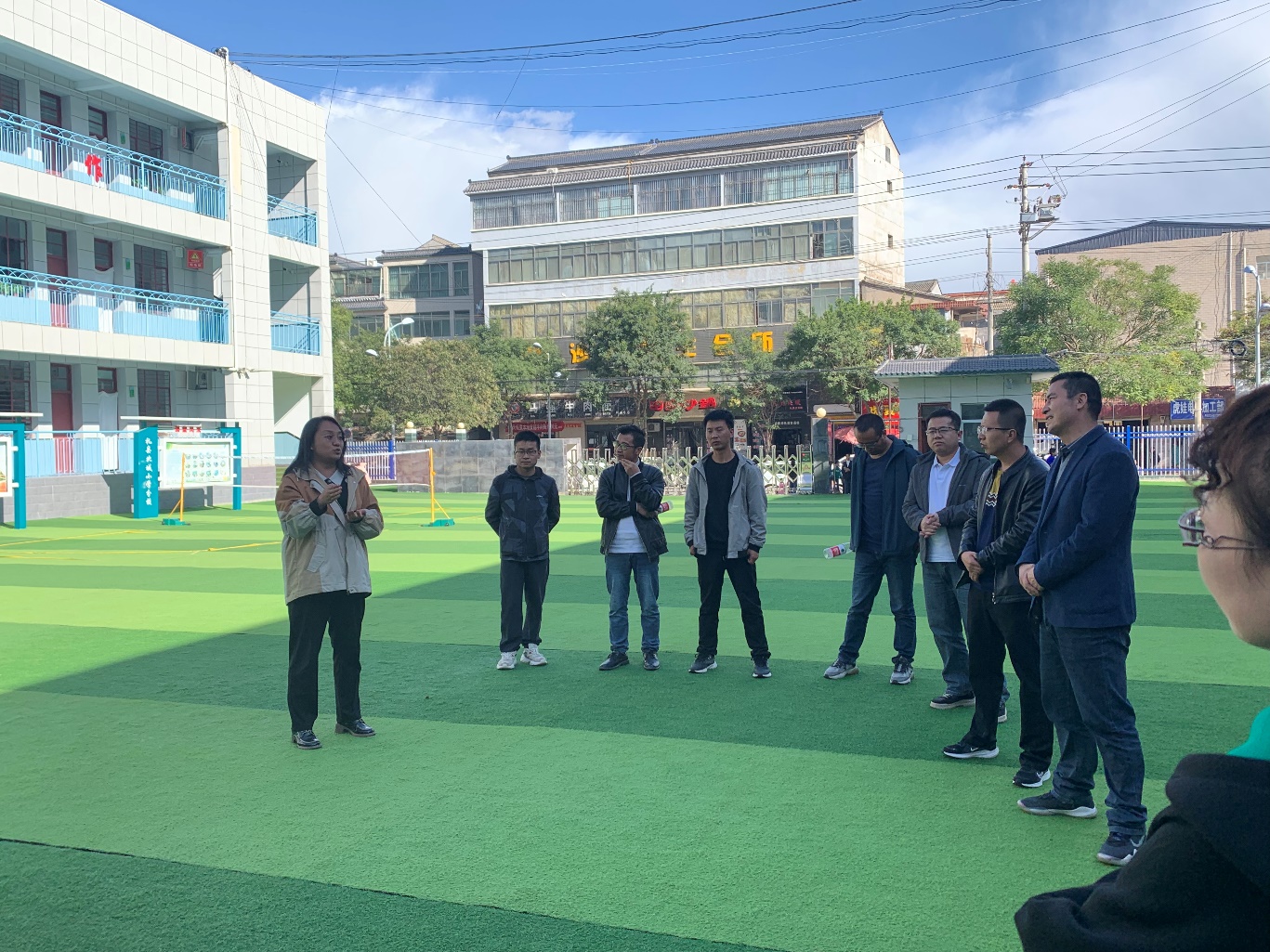第二部分主要为“促交流,共进步”团建—素质拓展活动,活动在礼县北城小学操场开展。此次活动的主持人是西北师范大学心理健康教育专业的研究生杨振宇,项目校领导与老师积极参与。活动正式开始前,主持人为参与教师介绍了活动流程及团辅活动的意义,借助热身游戏,为活动正式开展拉开序幕。通过组建团队、游戏比赛、经验分享、活动总结等环节,老师们积极参与并表达自己的经验和看法。在活动总结环节,西北师范大学雍琳副教授强调老师要在体验中学习,迁移活动启发,探索融入式全新教学道路,使学习变得有趣、轻松。在热烈讨论后,活动顺利落下帷幕。