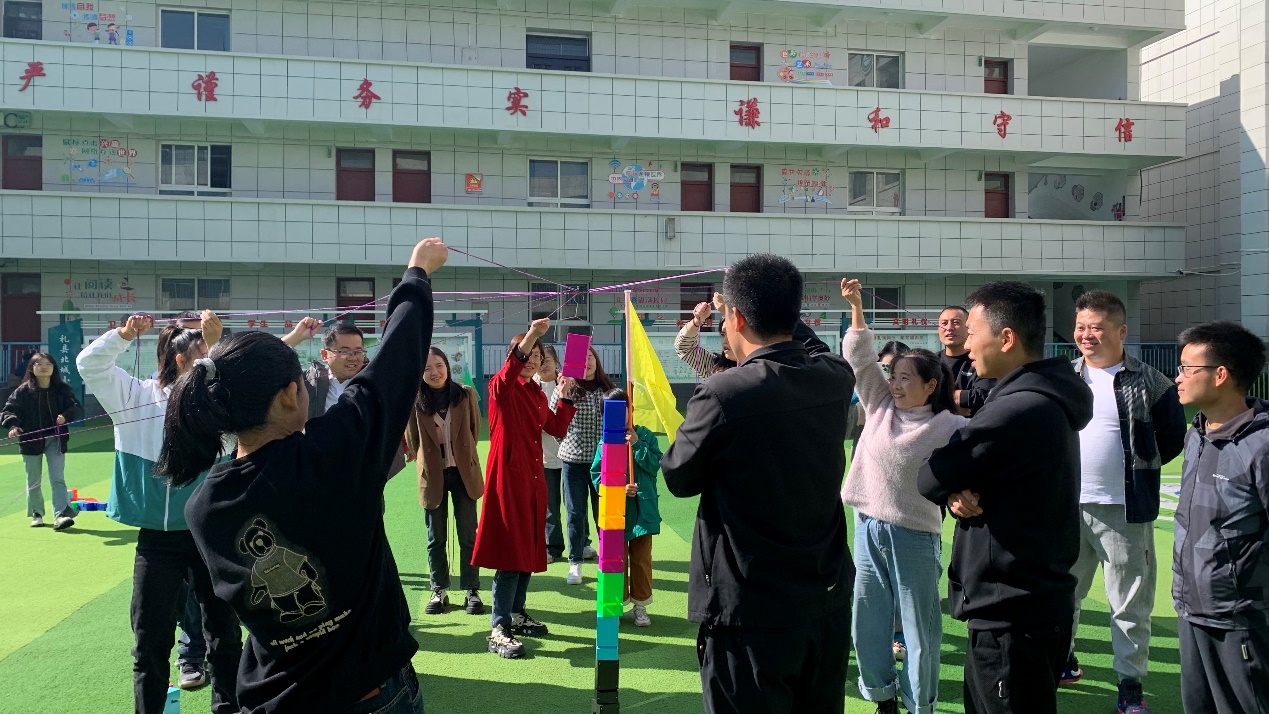 参与教师分组完成团建—素质拓展游戏