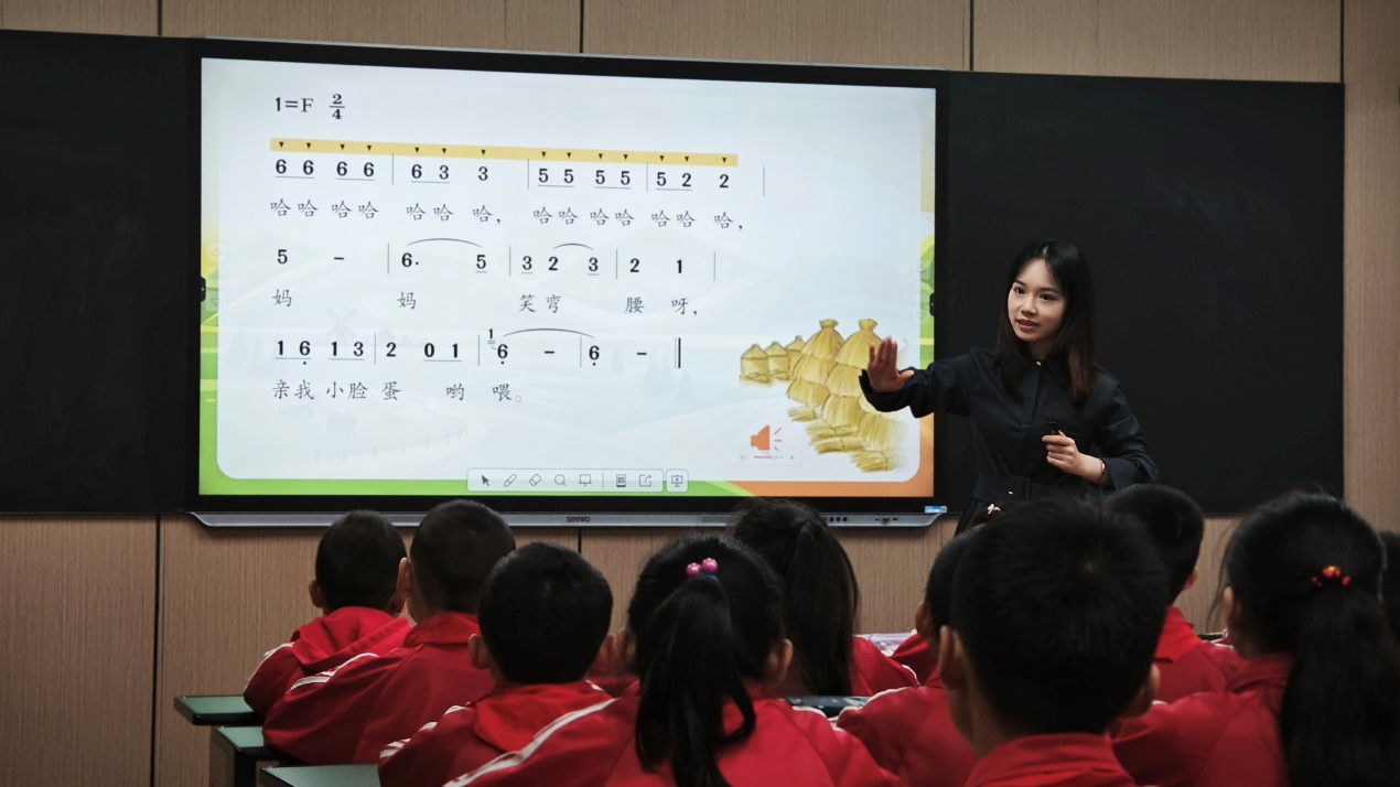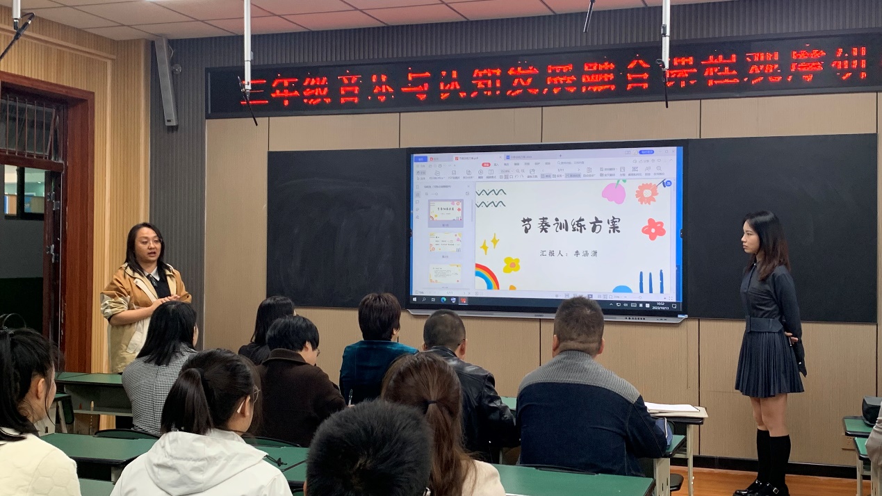 西北师范大学应用心理专业的研究生季涵潇为三年级同学讲授音乐与认知发展融合课程《如今家乡山连山》。通过互动的方式让学生积极参与,逐步锻炼学生认知能力,整个课程生动有趣。