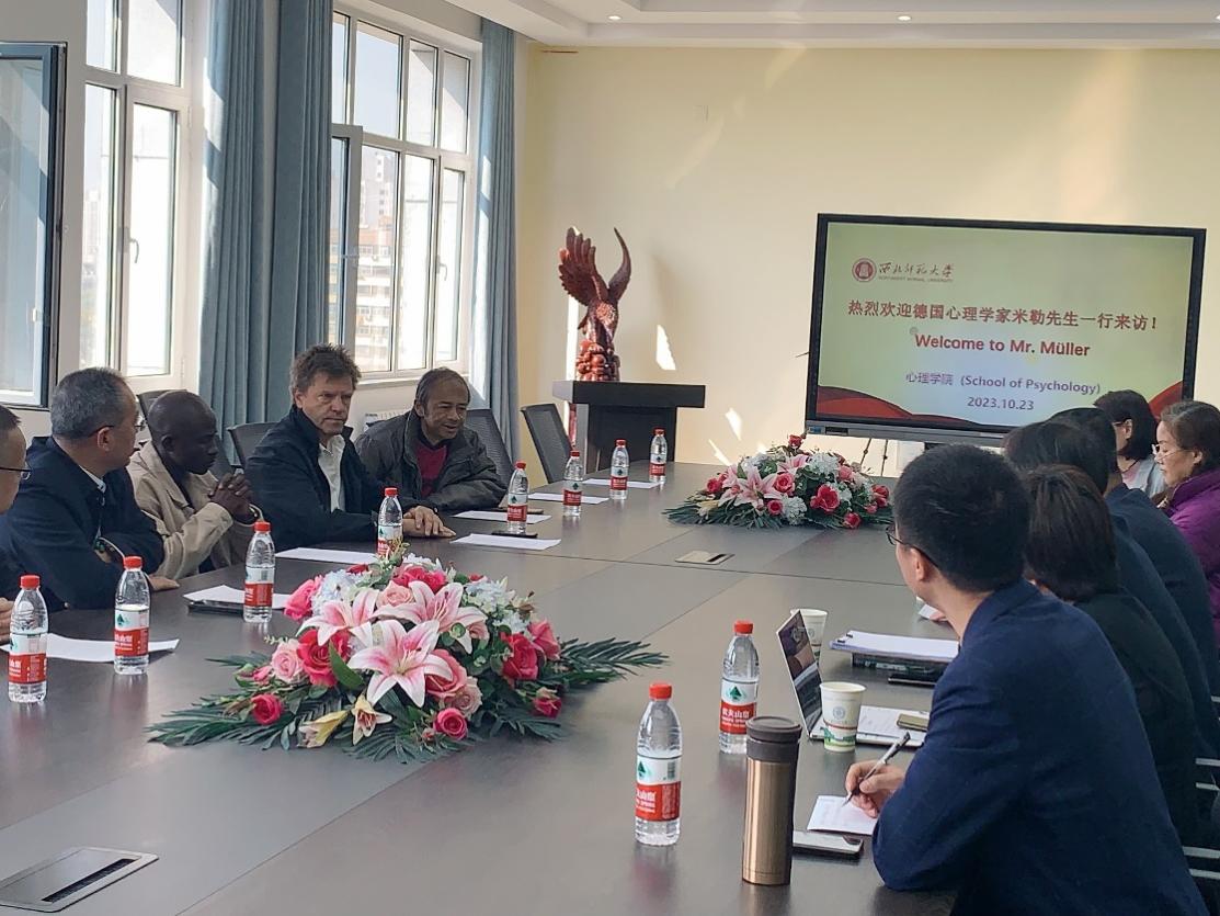 会上,赵振文对米勒先生及本次访问和交流的背景进行介绍。米勒先生是世界著名的心理学研究专家,德国联邦政府特聘心理研究员,“马丁·路德”特教学校校长,德国“凯斯汀·嗨姆”青少年心理健康帮助中心负责人。期待通过本次访问新利体育,共商搭建德语教学平台,为持续稳定开展中德合作,奠定基础。