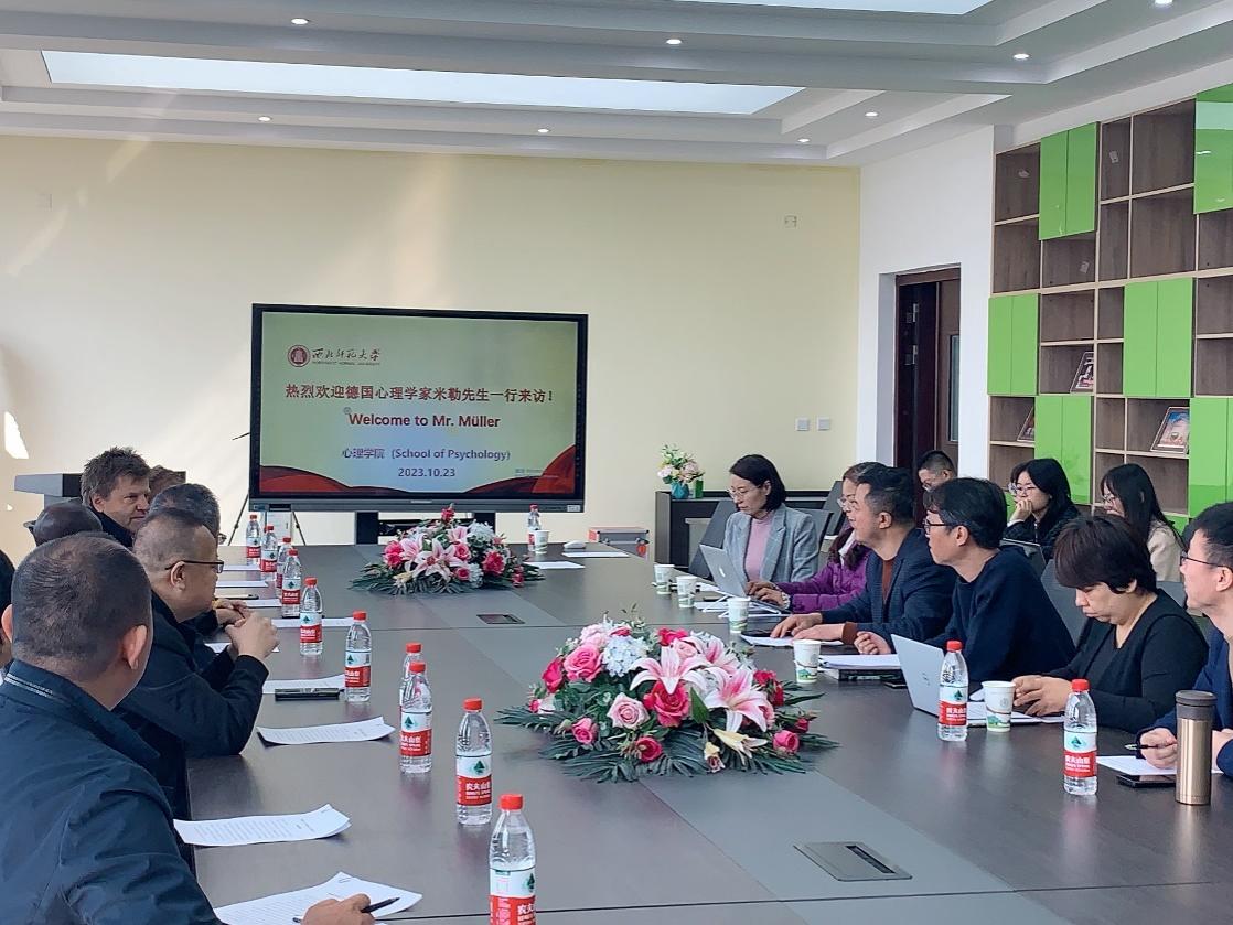 米勒先生与我校心理健康教育和特教专家就情绪与健康、儿童发展、青少年心理咨询等问题展开了深入讨论,在师资能力提升和学生实习实践方面达成初步合作意向。米勒先生表示,今天是第一次来到兰州西北师范大学,他看到了不一样的校园文化,收获良多。希望未来有更多的交流与合作,为中国应对日益严峻的心理健康问题发挥积极的作用。