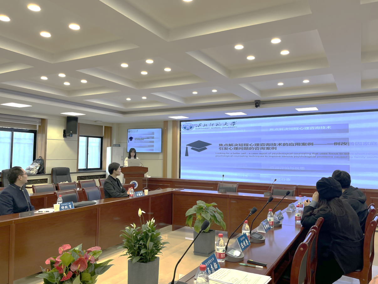 来自城市学院的刘生斌,西北师范大学的陈应楠、马志钰、孔雅婷,西北民族大学的韦柳槟、陇东学院的陈悦鸯等同学分别分享了心理健康教育课程教学方案、心理咨询与辅导方案的设计,并展示了教学、咨询等的技能。来自陇东学院的杜军老师、西北民族大学的程光远老师、西北师范大学的舒跃育老师分享了指导经验。白学军教授对各位参赛选手的展示进行了指导和点评,同时也与各位指导教师进行了交流。