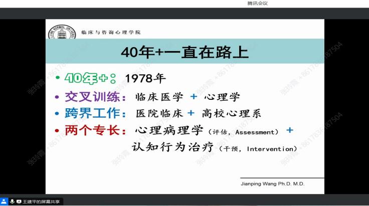 11月8日晚上,北京师范大学二级教授、博士生导师、北京师范大学心理学部临床与咨询新利体育副院长王建平老师为学员进行线上授课,王老师分享了认知行为疗法的概述,使学员对这一疗法有初步认识,更新了学员的知识系统。