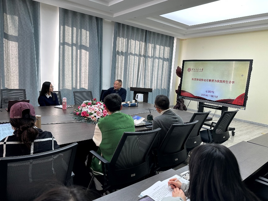 讲座接近尾声时,彭运石教授与同学们进行了互动,并对同学们提出的问题进行了详细解答。