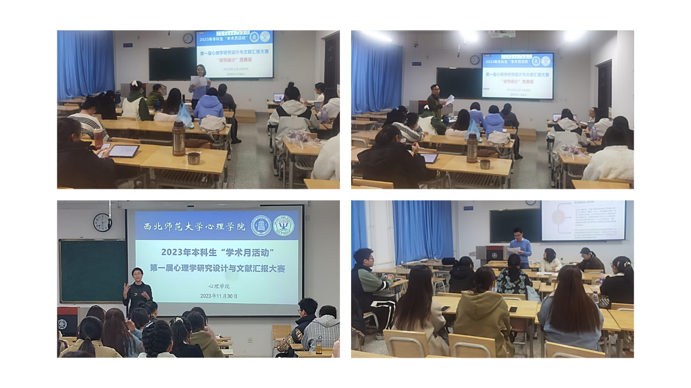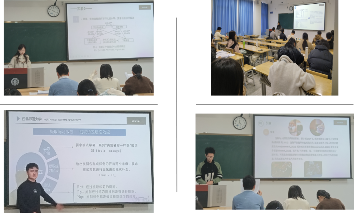 文献汇报比赛分为两个组,分别在弘文楼214和215教室举行,同学们结合自己感兴趣的研究领域,选择研究文献进行汇报。汇报文献的主题涉及青少年社会适应能力、网络成瘾倾向、社会幸福感等多个领域。每位选手从文献的研究背景、问题提出、方法和结论等方面进行详细的阐述。