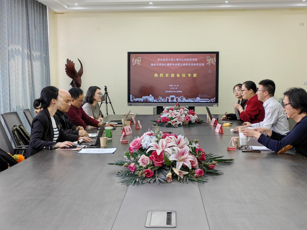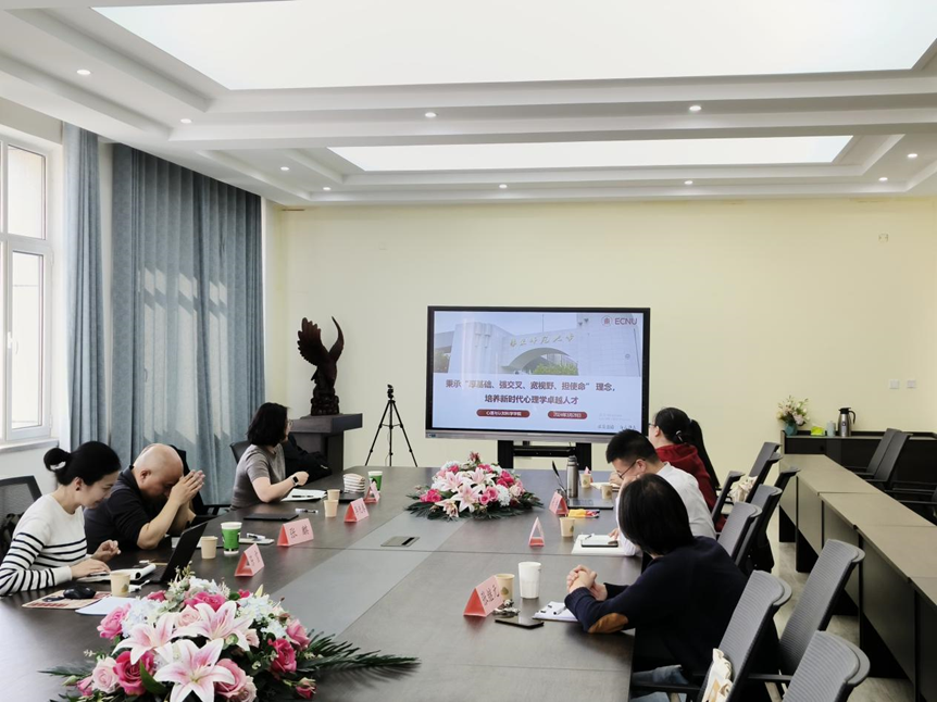 双方还就“学力教育+行业认证”心理健康人才的培养模式进行了座谈交流。学院心理咨询与培训中心副主任吴博副教授针对我院应用心理临床与咨询心理方向专业硕士行业认证项目的筹备、认证过程和建设历程和相关经验进行了详细的介绍;华东师范大学心理与认知科学学院应用心理专业学位中心行政主管汪红英老师就华东师大目前应用心理专业硕士的学科建设和人才培养模式进行了分享。双方就心理健康人才的培养模式、师资队伍建设、培养方案、课程设置、专业实习实践方案、做法与经验和校内实习基地的运行机制、学生实习期间管理等进行了深度的沟通与交流。
