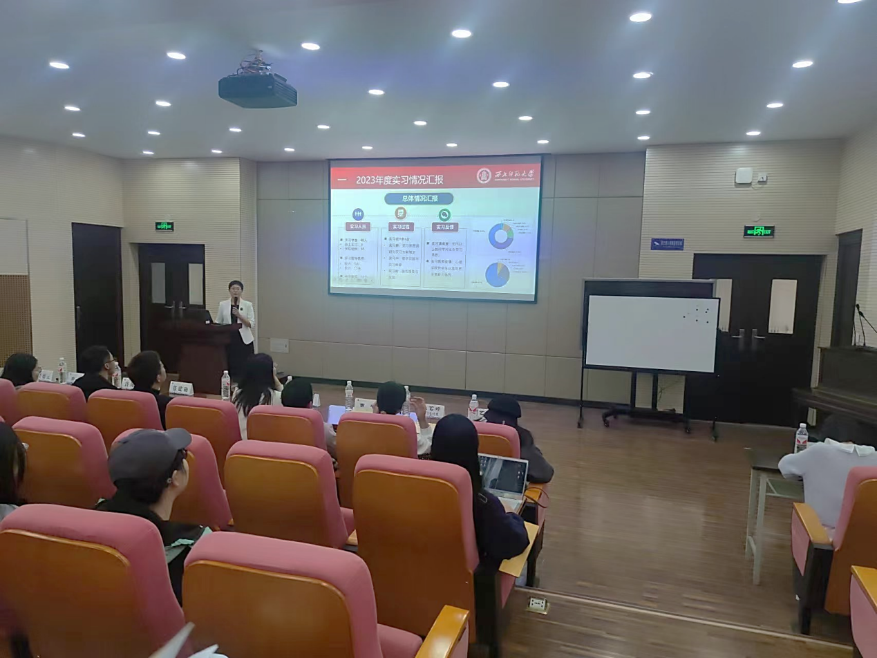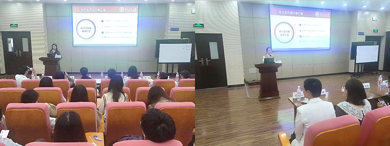 在实习生代表总结发言中,慕艺薇、张艺婷同学总结了实习过程中开展的各项实习工作,以及在实习过程中的收获和成长,他们对学院的精心组织,实习学校指导教师、领导的关怀和教导表达了诚挚的感谢。