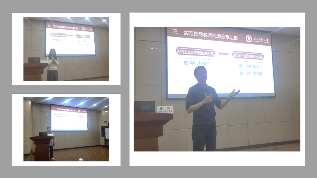 来自兰州市第五十一中学的张翔老师、第五十八中学的潘丽老师和学院的曹华老师分别介绍了实习过程中学生们的实习情况和学生们的成长,同时分享了对本科生教育实习指导的模式探索和指导经验。
