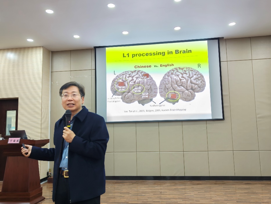 丁国盛教授首先介绍了他的研究方向并讲授了与大脑语言加工的有关概念、并详细介绍介绍了脑功能是如何激活的及其相关动态脑网络机制;之后丁教授介绍了自己目前的研究方向,也强调了双语学习过程中所导致的脑区功能的激活和脑网络加工的不同是有研究必要性的;最后丁教授讲述了自己在未来会着重关注的研究问题并认为有必要对分离双语神经表征-控制的相关理论框架进一步进行整合和深入的探讨研究。这可以为之后探索不同语言与脑网络间的联系提供更加夯实的理论基础。