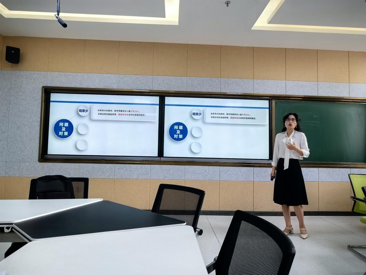 陈莉老师分享了课堂教学中融入学术研究、课程思政,以及培养学生兴趣、提高学生学习动机水平等的具体做法。雍老师以问题为导向,结合心理健康教育和辅导的实践需要,引导学生参与问题讨论和汇报,充分体现了以学生发展为中心的理念。教学督导杨玲教授在观摩学院教师的课堂教学和汇报之后表示,学院青年教师在课堂教学中,对于新资源、新技术的应用,值得所有老师相互学习和借鉴。同时,她还强调老师们在教学中不仅要重视教学设计,还要把先进的教学理念、数字化教学资源的应用等充分体现在课堂教学实践过程中,为提高本科生教学质量提供保障。