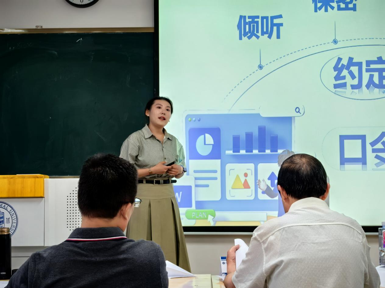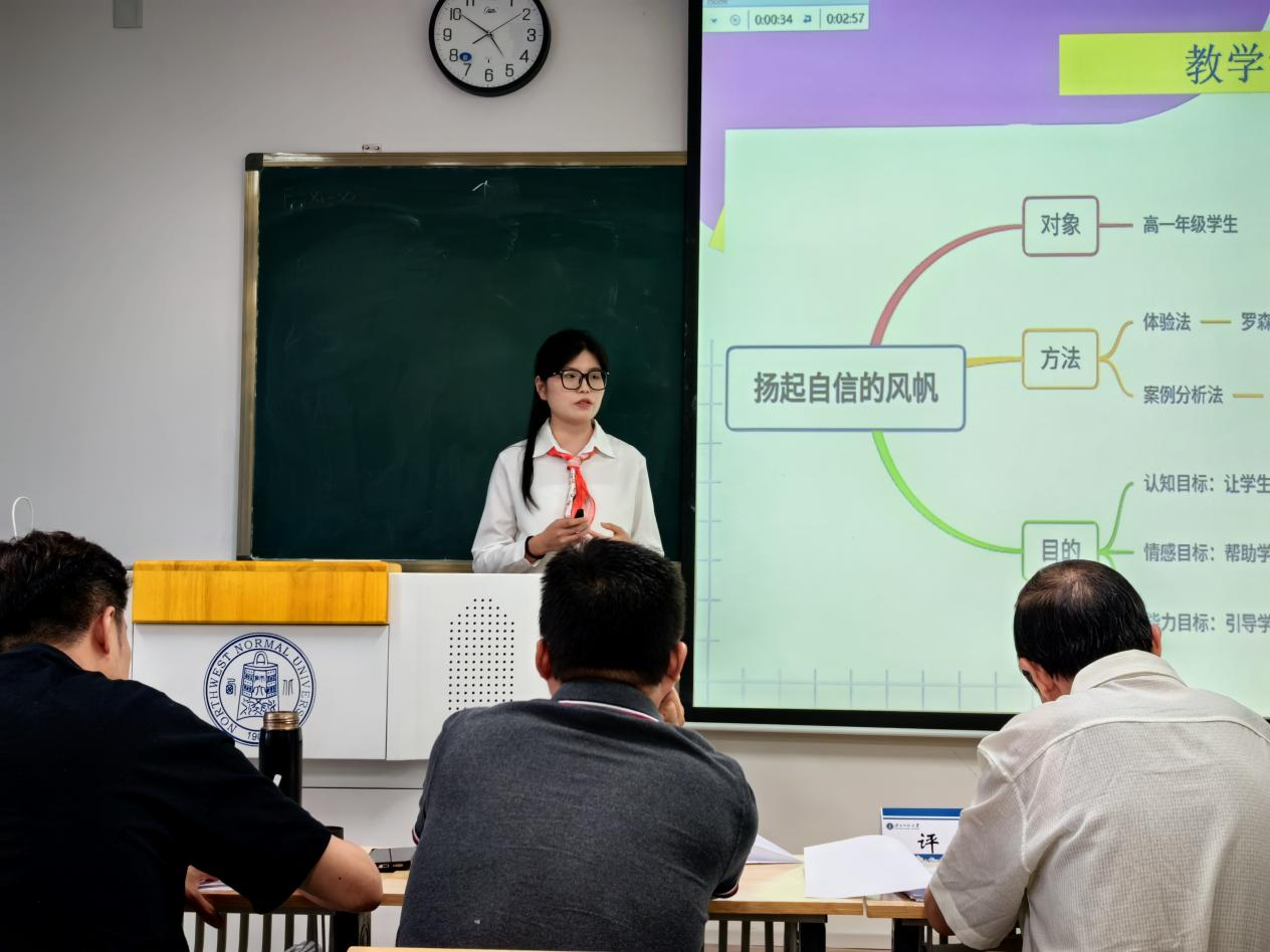 同学们在教学展示中,结合中学生生涯规划、学习心理、自我意识发展等设计教学内容,模拟授课中体现了以学生发展为中心的理念,应用游戏、视频、心理辅导活动等多种形式组织课堂教学。