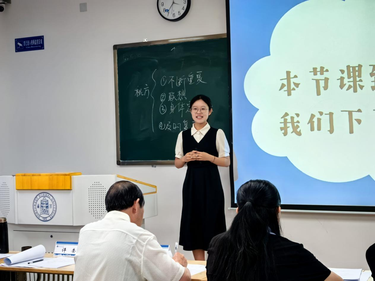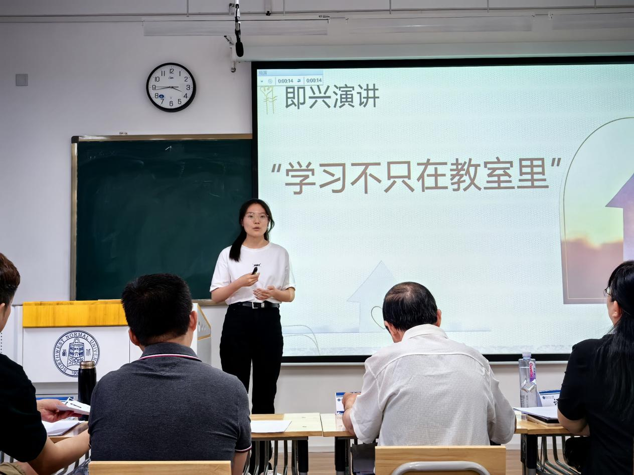 同学们的即兴演讲能够结合教育实习见习、志愿服务或学习心理学专业的感悟,分享自己的观点,具有很强的感染力。教学反思也体现了同学们对教学过程中的优点、不足的进行了深刻的自省审视。整个环节中同学们自信阳光、积极向上,体现了同学们扎实的专业知识和教学基本功,也体现了同学们良好的心理素质和努力进取的精神风貌。