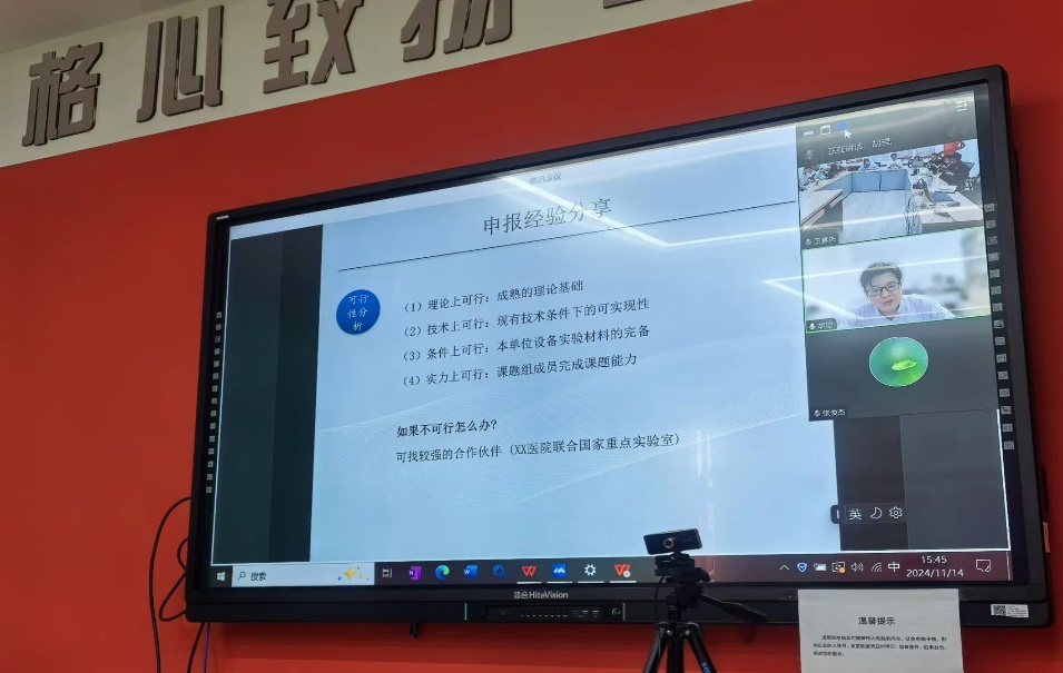 2024年11月14日,为了进一步提升国家自然科学基金项目申报的质量和水平,我院在弘文楼453召开了2025年第一次国家自然科学基金项目申报辅导报告会。本次会议邀请了中国科学院心理研究所胡理研究员为我院的自科基金申报工作进行在线指导,马小凤教授主持了本次会议,新利体育拟申报教师参加了本次会议。