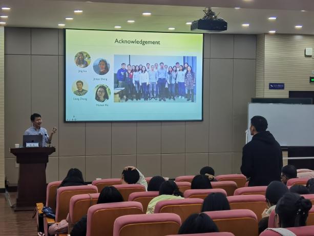 薛贵教授首先介绍了记忆表征转换的内涵。记忆表征并非固定不变,而是在记忆的编码、存储和提取等阶段不断发生转换。以情景记忆为例,记忆表征的内容具有多面性和分布广泛性,包括低级感觉表征、语义表征、时空表征和图式表征等,且分布在大脑各个区域。其次,薛教授介绍了记忆表征转换的过程,并提出记忆表征的稳定性在记忆内容的变化程度和记忆效果之间起着中介作用。在探讨如何提升记忆表征精确度的问题上,薛教授指出,不同个体间的记忆能力与记忆内容存在着显著的差异。他进一步提出,利用大数据分析方法,通过增加样本数量,可以有效提升记忆表征的精确度,进而增强个体的语义表征能力。随后,薛教授分享了其团队最新的脑成像研究成果。研究显示,当记忆信息不存在冲突时,信息的编码过程主要发生在视觉皮层;而当记忆信息出现冲突时,编码过程则转移至顶叶皮层进行。这一发现揭示了大脑在处理不同类型记忆信息时的神经机制差异。最后,薛教授对记忆表征转换的研究进行了展望和总结。他强调,记忆本质上是一个转换的过程,未来研究可以在深度学习领域进一步探索记忆转换的潜在机制。薛教授的讲座不仅加深了同学们对记忆表征转换的理解,也为相关领域的研究者提供了新的研究方向和灵感。