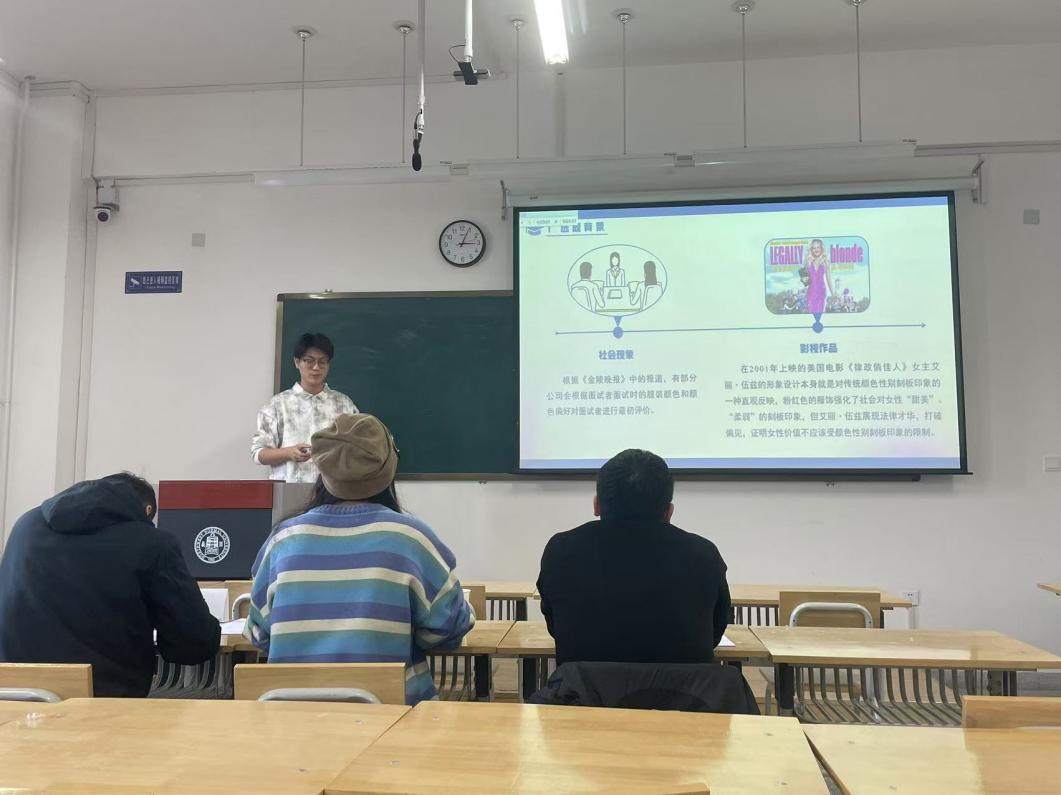 本次比赛设有四个分组,其中研究设计一个组,文献汇报四个组。研究设计组由曹华老师、张建勋老师和潘超超老师担任评委,比赛在弘文楼213举行,参赛同学分别介绍了自己的实验设计的研究背景、研究思路、研究目的和研究意义等方面。研究选题涉及性别刻板印象、利他行为、创造力、感觉加工、阅读词汇加工、心理剧辅导、正念干预、消费决策、青少年冒险行为等,研究对象主要包括中学生,研究方法有行为实验等。