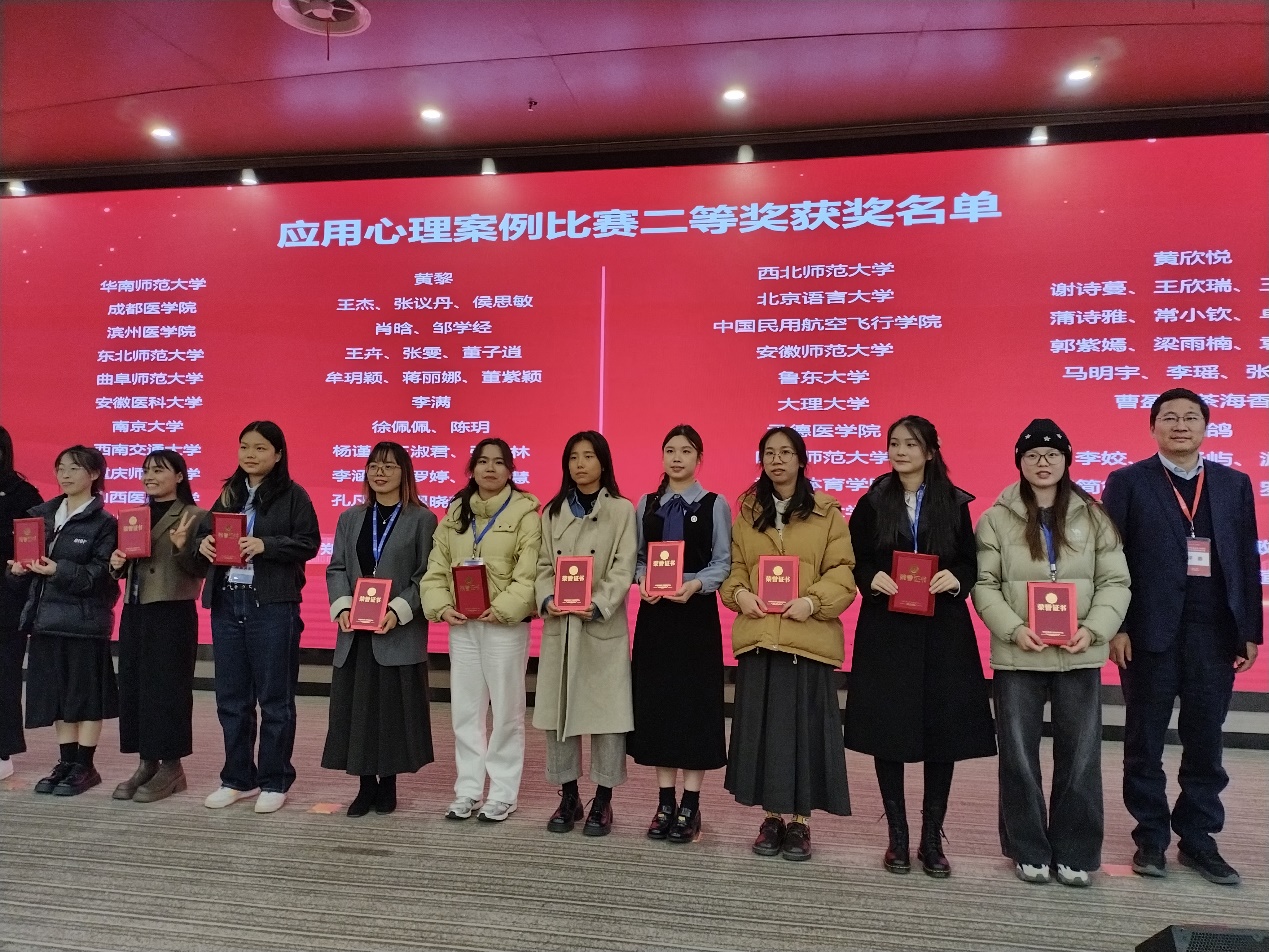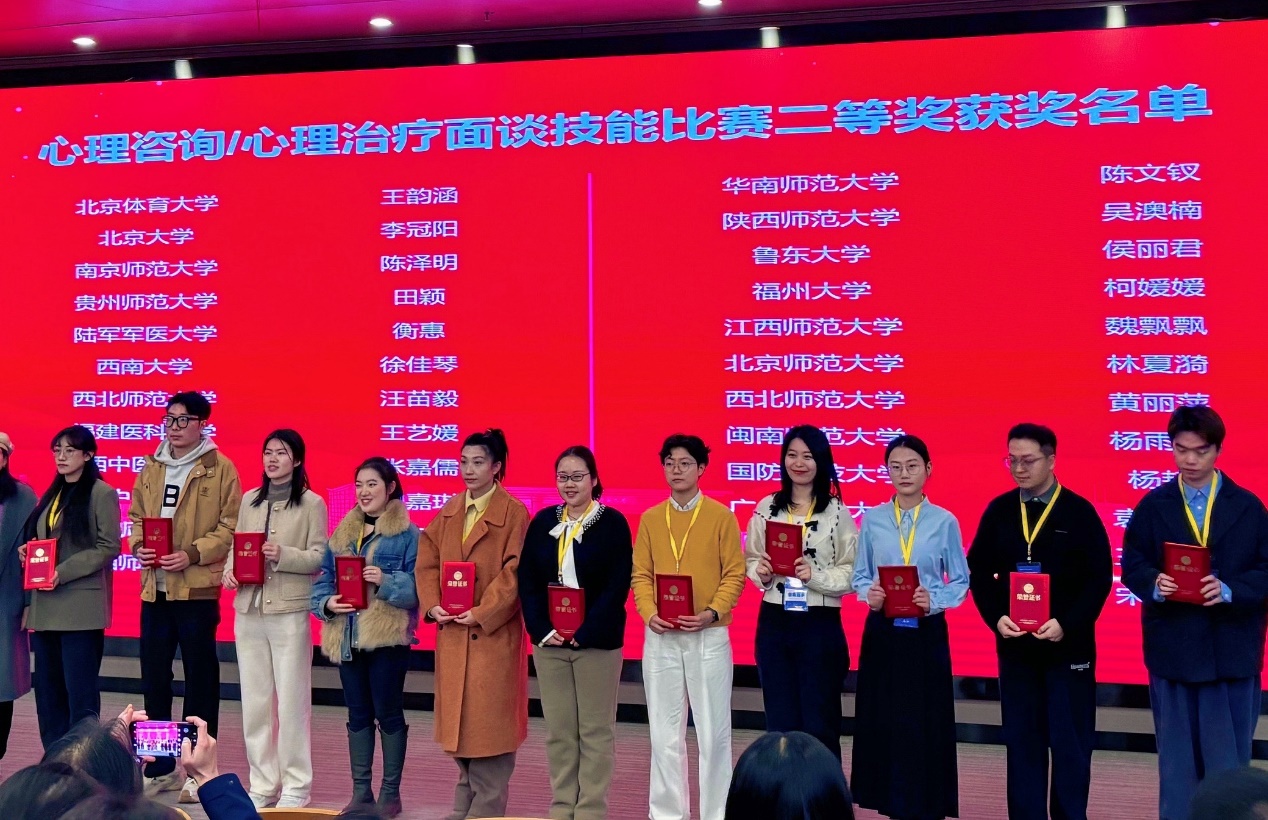 2024年12月7-8日,由全国应用心理专业学位研究生教育指导委员会指导、中国学位与研究生教育学会主办的2024年全国应用心理专业学位研究生实践技能大赛在华中师范大学举行。我院姜艳斐副教授指导的黄丽萍同学获得心理咨询面谈技能比赛二等奖;吴博副教授指导的汪苗毅同学获得心理咨询面谈技能比赛二等奖;周爱保教授指导的黄欣悦同学获得应用心理教学案例比赛二等奖;本次比赛由姜艳斐副教授和雍琳副教授带队参加,张继元老师受邀担任比赛评委。