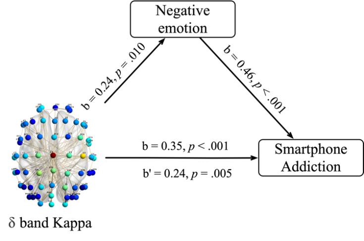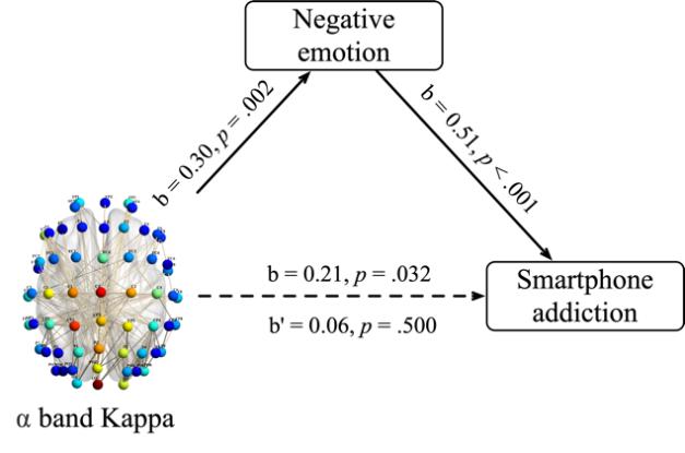 Yin, Y., Li, X., Lau, J. T. F., Nan, S., Ouyang, M., Cai, X., & Wang, P. (2024). Negative emotions mediate the association between the topology of the complex brain network and smartphone use disorder: A resting-state EEG study. J Behav Addict, 13(1), 120-133. https://doi.org/10.1556/2006.2023.00077