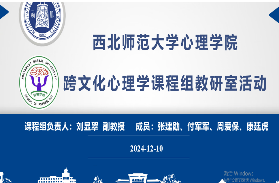 2024年12月10日,应用心理学系以线上方式组织《跨文化心理学》课程任课教师的教研活动,应用心理学系张建勋老师、付军军老师等参加了活动。活动由应用心理学系系主任刘显翠副教授主持。