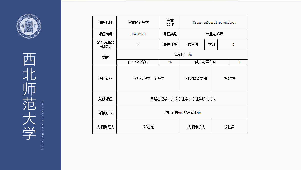 在活动中,刘显翠主任介绍了《跨文化心理学》课程的教学大纲、教案设计,组织教师讨论了课程组建设、教学资源建设等内容。此外,各位任课教师还交流了本学期《跨文化心理学》课程教学中教学方法应用、课程思政融入等问题,并确定了该课程的教学评价方式。