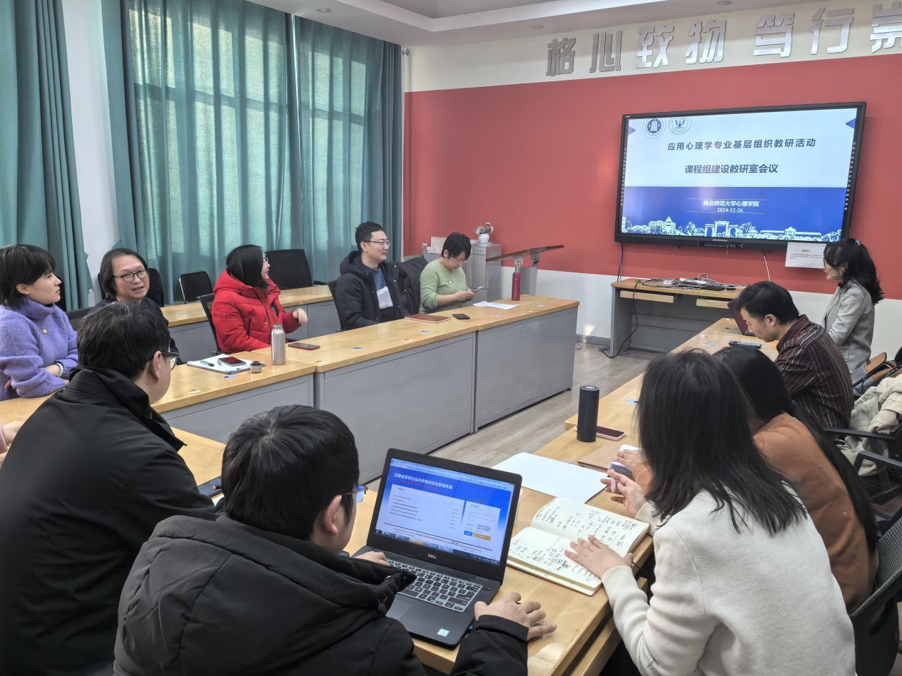 学院在研讨整改方案的过程中,结合前期有关课程组的建设规划,组织心理学系、应用心理学系教师对课程组建设方案提出意见,并在教学工作会议上进行汇报反馈。学院教师积极参与课程组建设的方案论证,并为学院本科教学管理改革、基层教学组织建设、教学资源建设、教学成果培育、工作量核定等提出了宝贵意见。