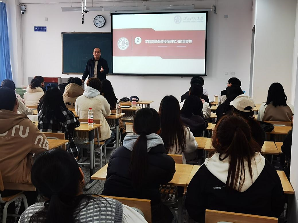 学院周爱保教授关心学生成长,参加了本次动员会并以“实习是专业成长的必经之路”为主题,深入阐述了实习对本科生发展的重要性。他强调,实习不仅是检验课堂知识的试金石,更是“一事多得”的宝贵机会。“同学们要主动转变角色,以观察者、学习者和实践者的身份深入心理健康教育一线,在服务中积累经验,在实践中收集科研数据,真正实现知行合一。”