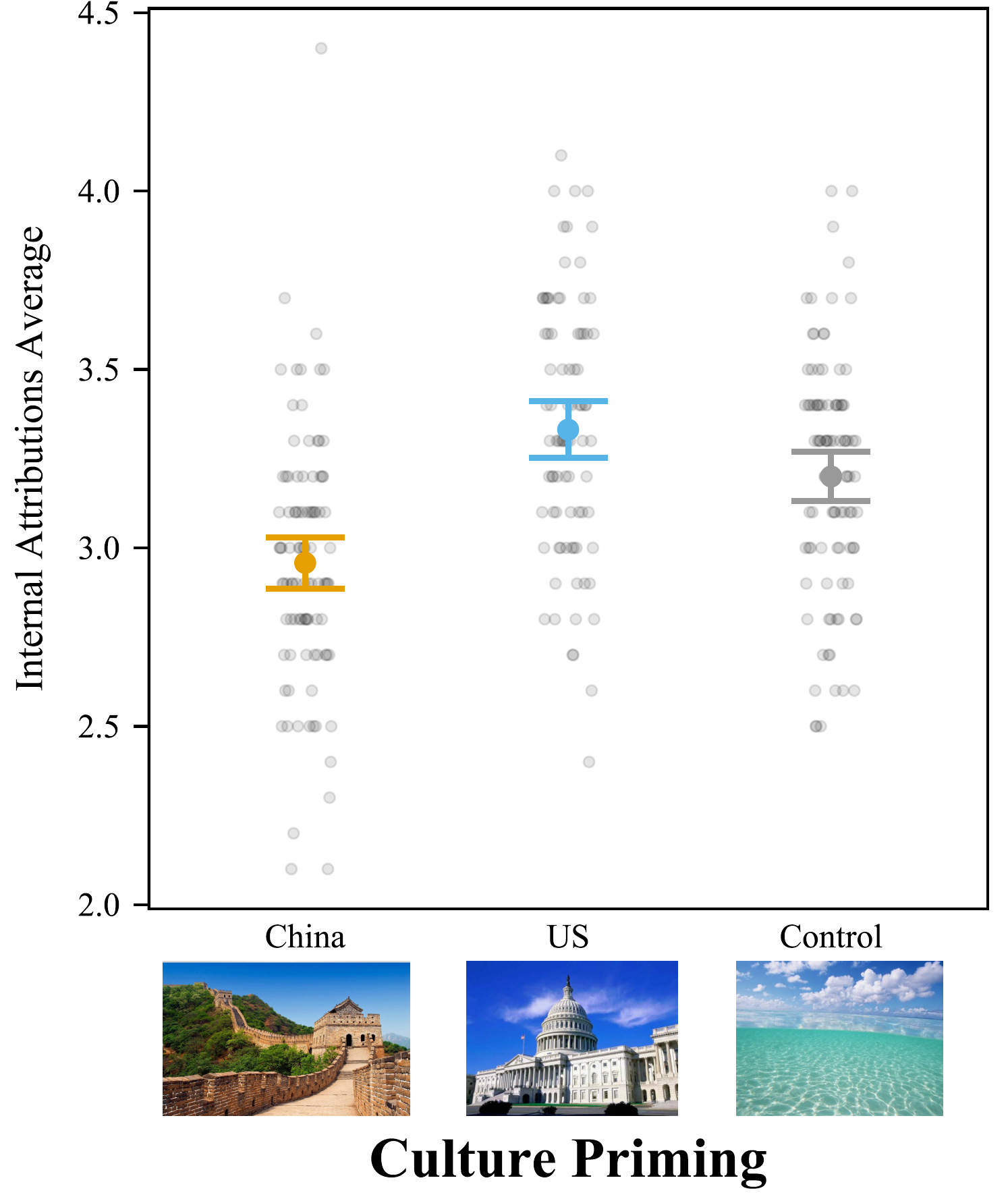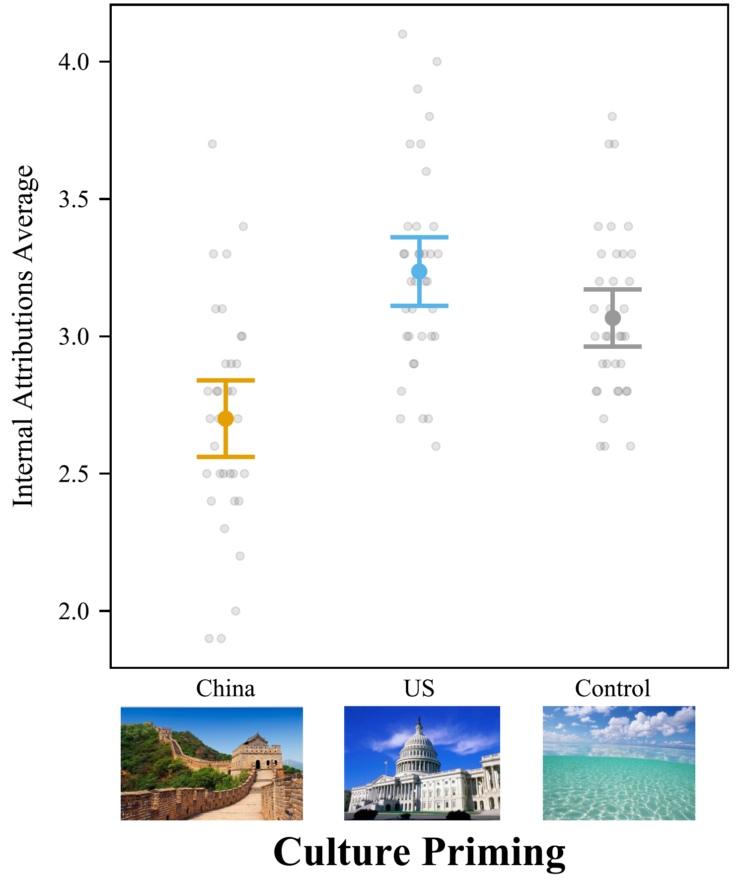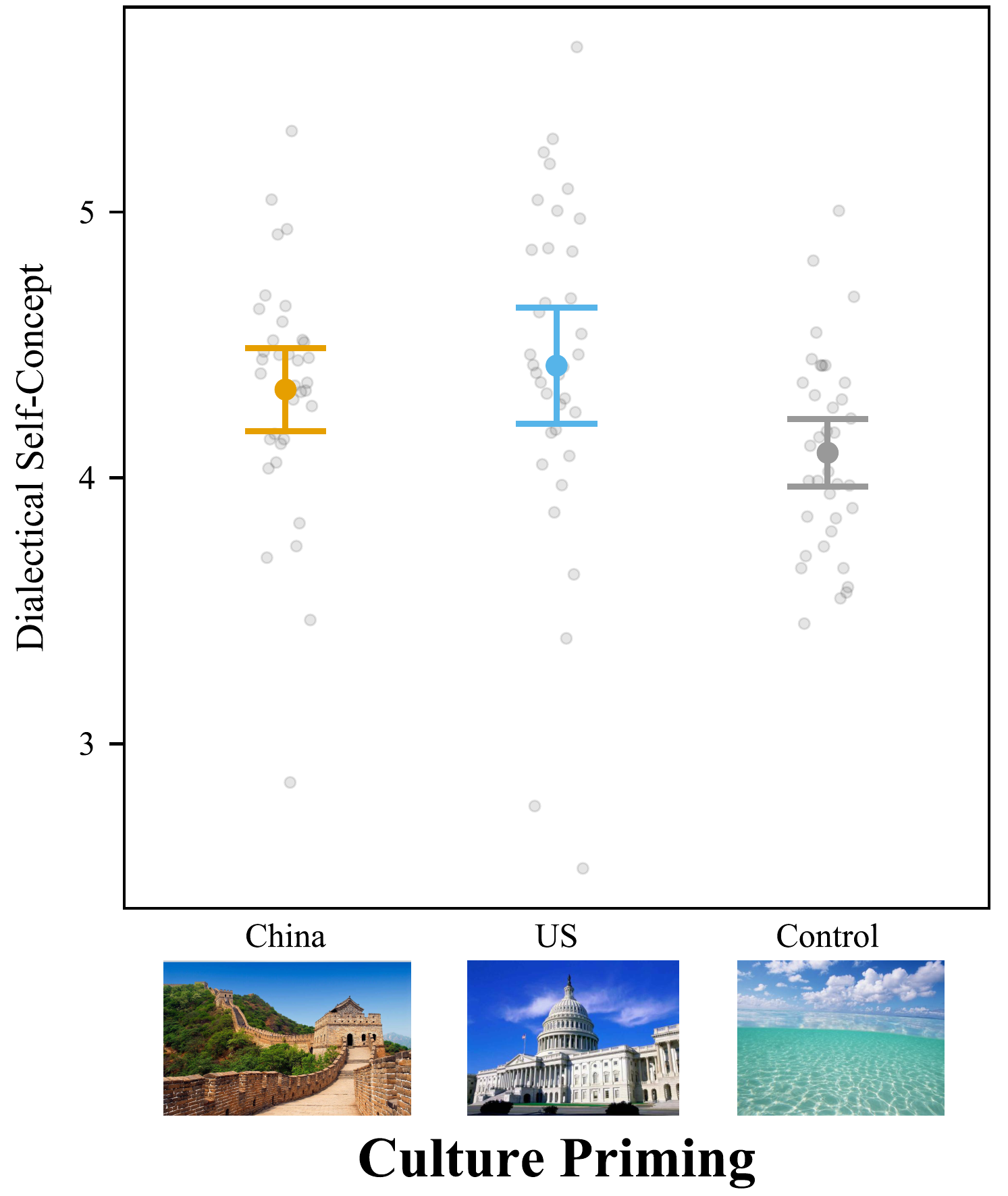 近日,新利体育王伊萌博士、南京师范大学新利体育暨道德教育研究所汪凤炎教授、美国芝加哥大学布斯商学院行为科学系Thomas Talhelm教授、南京师范大学新利体育硕士研究生陈逸群(已毕业),联合在国际期刊《英国心理学杂志》(British Journal of Psychology)发表题为《New evidence finds young people in Mainland China are now bicultural》的研究论文,首次通过实证研究揭示中国大陆青年群体在文化身份上的动态适应性。该研究采用经典的文化启动范式,通过向参与者展示中美文化符号,观察其对行为归因方式和自我概念的影响。实验覆盖香港、中国大陆三所高校的年轻学生及1978年前出生的年长群体,总样本量超过600人。研究发现:(1)当启动美国文化符号时,中国大陆年轻学生更倾向于“内在归因”,而启动中国文化符号时则更关注“外在情境”。这种切换模式与香港学生的双文化特征高度一致;(2)年长群体未表现出类似的文化启动效应,表明双文化认知与成长环境密切相关;(3)意外发现,美国文化启动反而提升了中国学生的辩证思维(如容忍矛盾、动态看待自我),研究者推测这与多元文化冲突引发的认知整合有关。