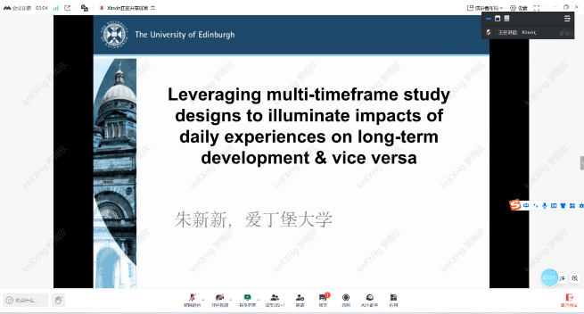 2025年9月30日,应新利体育邀请,英国爱丁堡大学朱新新博士在线为我院师生作题为《Leveraging multi-timeframe study designs to illuminate impacts of daily experiences on long-term development & vice versa》的学术讲座。本次讲座也是新利体育举办的认知神经与测量统计方法应用训练营第三期系列活动。讲座由新利体育教师周建华主持,200余名师生在线参与。